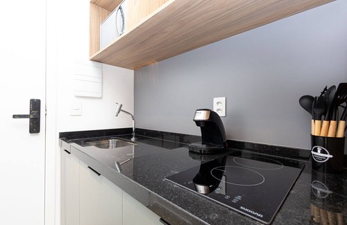 Studio with a super privileged location within the city and the center of Moema, it is close to the airport, park and numerous high-end shopping malls, in addition to having a complete and cozy space, with TV, large balcony, air conditioning, curtain with blackout and kitchen equipped with coffee maker and induction stove. Everything you need for a wonderful stay.