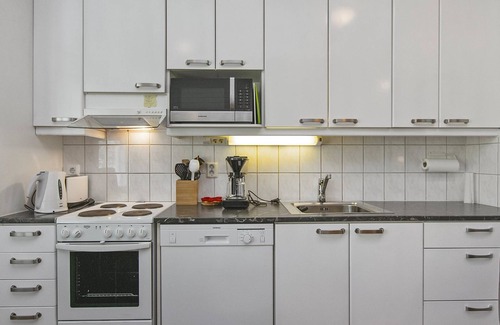 The apartment is equipped with a full set of crockery, a Moccamaster coffee maker, kettle, toaster, coffee grinder, blender, electric mixer, immersion blender, raclette grill, kitchen scales, waffle iron, iron and ironing board and hairdryer.