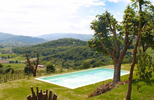 Montebello 14 km from Città di Castello: The house is situated among the characteristic hills of Umbria on the border with Tuscany, ideal place for a relaxing stay and an ideal location for many iteneraries in these two regions. Cosy, comfortable single-family house "Montebello", surrounded by trees, fields and vineyards. In the hamlet Citerna 10 km from the centre of Anghiari, 25 km from the centre of Arezzo, 40 km from the centre of Cortona, in a quiet, sunny position, 60 km from the lake, in the countryside. Private: well-kept garden with lawn, lawn for sunbathing, courtyard, swimming pool (12 x 6 m, depth 130 cm, seasonal availability: 15.May. - 25.Sep.). Patio. In the house: internet access, washing machine. Parking on the premises. Shop 1 km, supermarket 4 km, restaurant 1 km, café 1 km, bus stop 210 m, railway station "San Giustino" 12 km. Groups of teenagers on request only. The owner does not accept any youth groups.