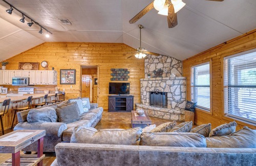 Moon River Lodge, a spacious single-story luxury lodge in the Mountain Valley Subdivision, is only 10 minutes from Garner State Park and 2 minutes to FREE Frio River access at Gravel Bar. This home welcomes returning guests year after year. Our NO BUNK policy means that both family groups and friend groups get a good night's sleep with plenty of room. The huge living spaces, fenced and gated pool, and proximity to some of Concan's most popular attractions make Moon River a Concan favorite.