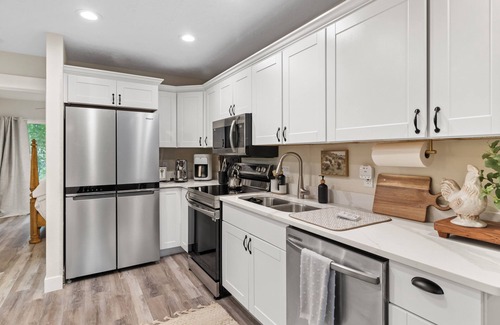 • Accommodations: 1 bedroom 1 bathroom and sleeping arrangements for up to 2 guests. The bedroom boasts a king-sized bed and a smart TV. There is also a Washer/Dryer for your use