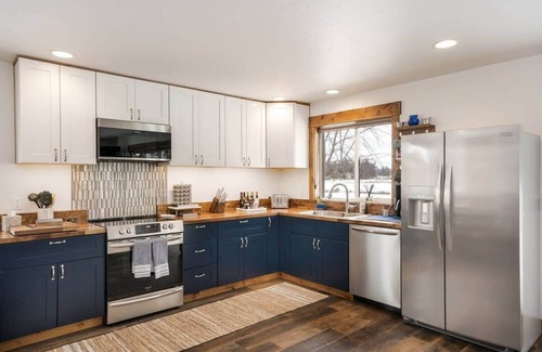 Your Glacier Park adventure starts here! This remodeled 3BD 3 BA home outside Kalispell offers the perfect blend of modern comforts and natural beauty. Immerse the family in the ambiance of the on-site creek. Canoes, SUP, & Kayaks are available along with firepits and yard games. Glacier National Park is just a short drive away. Soothe your muscles in the sauna or unwind in the backyard. Enjoy a taste of local culture, breweries, and shopping in Kalispell area. The well-equipped kitchen offers family dining with an open living area.