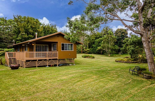 Nate's Place is a cozy yet spacious two bedroom, two bathroom vacation home in the Volcano Golf and Country Club neighborhood, Volcano, Hawaii on Hawaii Island (The Big Island). Our house sits on the quiet end of a cul-de-sac on a double lot. You'll have the entire home to yourself and relax surrounded by old growth Koa trees and our rolling lawn.