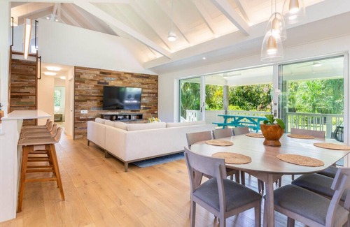 Newly Constructed home at Anini Beach is located in Kilauea. Newly Constructed home at Anini Beach provides accommodation, featuring Child Friendly, Internet, Kitchen, among other amenities. This House features Child Friendly, Internet, Kitchen, to make your stay a comfortable one.