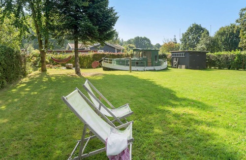 Look forward to a relaxing family vacation in this family vacation home. Several bedrooms and the bright living room with adjoining dining room invite you to spend convivial hours with your loved ones. Enjoy the daylight that floods into the house through the numerous windows and warm yourself by the charming wood-burning stove. Sit at the kitchen counter while the family's amateur chefs work their magic in the kitchen and step out into the garden to sunbathe on the garden furniture. Watch your children play in the garden and let them discover the boat on the property.