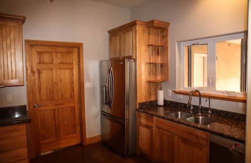 Private retreat home located on 20 acres in the Manzano Mountains. Gated and fenced for safety and extra privacy. Enjoy your stay in enchanted New Mexico and relax and unwind in this beautiful, spacious, elegant Southwest home. Three bedroom, two and a half bath including one king and two queen beds. Master bath has large soaking tub and shower great for salt soaks after outdoor activities. Private entrances and beautiful views from each room with plenty of outdoor space to explore. Enjoy amazing sunrises and sunsets over the Manzano mountains and a completely unobstructed view of the magical starry night sky. Property is only a short scenic drive from Albuquerque International Sunport and located 38 miles southeast of Albuquerque. Convenient to I 40. Amenities include a solar heated lap pool, Radiant heated floors, Wood-Pellet Fireplace, WiFi, Roku T.V Netflix, HBO Max and Prime Video. On-site laundry, dishwasher and microwave. Coffee and tea station, extra air mattresses for additional guests. Robes and slippers for your comfort. Great escape for large families or groups. Minutes from the Cibola National Forest, Salinas Pueblo Missions National Monument. and Manzano State Park. Additional lodging is also available at an adjacent log cabin that accommodates four additional guests. Contact host if cabin space is needed for pricing.