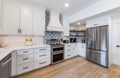 THE INTERIOR ~ The house is resplendent with comfy furniture and seating for all, with two separate living areas, replete with their own large Flat Screen TV's and a flex space/den to enjoy a quiet moment upstairs, no one will feel crowded! The open concept kitchen with stainless steel appliances easily accommodates a large group. The upgraded cabinetry, granite countertops, and premium cookware call to your “inner foodie” making cooking for a crowd a breeze. Love the new wine fridge and coffee/cocktail bar! All furniture is less than 2 years old.
