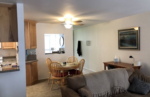 Oceanside harbor, with fine restaurants and shops, boating and sport fishing, is on one side of the complex, and the Oceanside pier and Downtown is a short walk on the other. Relax in a fully equipped condo with a southwest facing balcony, ocean view, dishwasher, microwave, TV, DVD and Wifi.