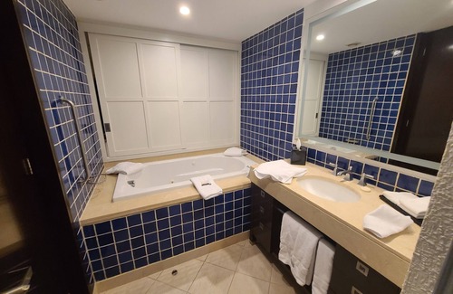 Luxury Studio Premium Villa at the Westin Lagunamar with an ocean view. Enough room to sleep four with a queen size bed and sofa bed. Balcony with beach and pool views. Includes a kitchenette and full size washer and dryer. Kitchenette with two-burner cooktop, microwave oven, compact refrigerator with icemaker, dishwasher, coffee maker, toaster, blender and dinnerware.