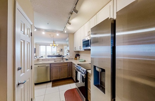 As you step inside, you'll be welcomed by a fully appointed kitchen, an open living and dining area with views of the ocean, and two sets of sliding glass doors that lead outside to the oceanfront balcony - one set in the living room and one in the primary bedroom. Other at-home comforts include free WiFi, a 60-inch HDTV in the living room, HDTVs in both bedrooms, AT&T U-verse, a DVR for recording, and nationwide long-distance phone service.