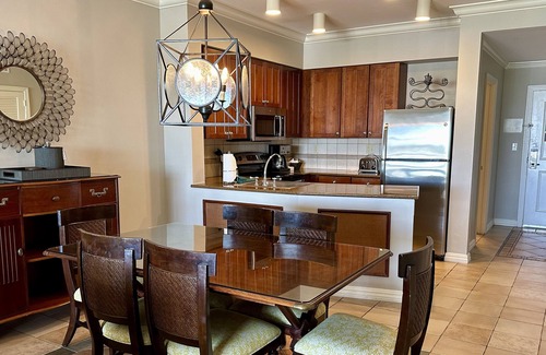 Cherish the lavish plantation-style décor while taking advantage of the convenience offered by a fully equipped kitchen, dining area, living room, 3 flat screen TVs, DVD player, private furnished balcony, heated infinity edge pool, and hot tub, BBQ grills, pool bar/ grille, etc. Complimentary Wi-Fi access, in-room washer and dryer, and on-site parking are also included.