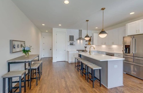 This gorgeous 4 bedroom, 3.5 bathroom home is exactly what you need for your Nashville vacation! With the most stunning new construction, ROOFTOP DECKS, DOWNTOWN VIEWS you`ll ever see and only being a short 2 minute ride to Broadway, Vanderbilt and "The Gulch" you`ll be super happy you landed here! These homes are perfect for large groups, and so close to everything that you won`t need a rental car!