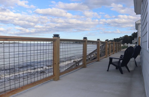 Outside: We renovated the patio in 2025 and it's really nice.... if I say so myself. More space to relax and unwind. It now has a fence along the sea wall providing safety for the little ones. Adirondack chairs dot the patio, along with two loungers and a patio table with chairs. Beach chairs are also provided, they are stored in the laundry room.