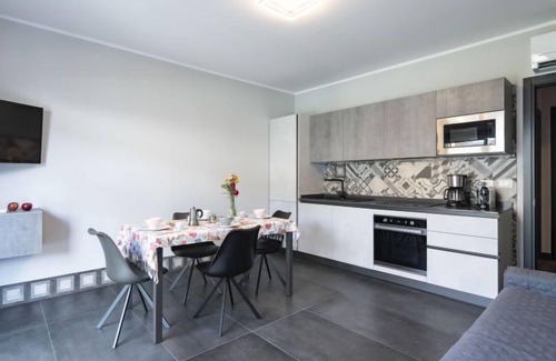 Modern, comfortable residence "Al Bistrot dei Vinai", 2 storeys, built in 2022. 6 apartments in the residence. In the district of Caramagna 1.5 km from the centre of Imperia, 25 km from the centre of San Remo, 90 km from the centre of Nizza, in a sunny position in the residential district, 1.5 km from the sea. For shared use: large, well-kept garden 1'000 m2 (fenced) with lawn and flowers, lawn for sunbathing, swimming pool (5 x 15 m, depth 140 cm, seasonal availability: 12.Apr. - 30.Sep.). Outdoor shower, garden furniture, barbecue, children's playground (slide), pool maintenance by the owner/gardener. In the house: lift, storage room for bicycles, air conditioning, washing machine, tumble dryer (for shared use), bicycle rental. Room cleaning on request (extra). Storeroom available. Motor access to the house. Parking (for 6 cars) on the premises, communal covered parking. Shop, grocery 600 m, supermarket 1 km, shopping centre 1 km, restaurant 2 km, bar 1 km, bakery 600 m, café 2 km, bicycle rental 2 km, bus stop 100 m, railway station "Imperia Oneglia" 6 km, sandy beach "Borgo Marina" 3 km pebble beach "Borgo Prino" 2 km, bathing lake "Laghetti di Lecchiore" 7 km. Cycle lane 2 km. Nearby attractions: Dolcedo Mountainbiken am Monte Faudo 7 km, Küstenradweg von Imperia bis Ospedaletti 2 km, Valloria das Dorf mit 150 bemalten Türen 10 km, Triora Hexendorf 45 km, Monte Carlo 75 km, San Remo 25 km. Hiking paths: Monte Faudo (1149 m) Mountainbike Trails. Please note: car recommended. Baby equipment (included). Additional accommodations can be booked.