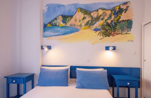 The Olive Grove Resort consists of 10 individual rooms, each one hosting 2 people, with private bathrooms and balconies. Overlooking the swimming pool or gardens, and close to the sea. All of the studios have pool view or garden view and come with safety deposit boxes and air conditioning units. Free parking and free wifi provided. Free toiletries provided. Daily cleaning service, sheets and towels provided. The pool bar-restaurant serves breakfast, lunch and dinner, as well as coffees and drinks all day long.