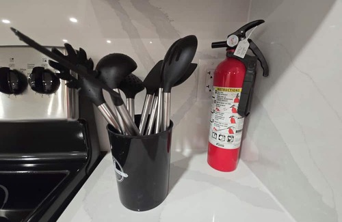 Fully equipped kitchen – stove, oven, fridge, kettle, and cooking essentials
