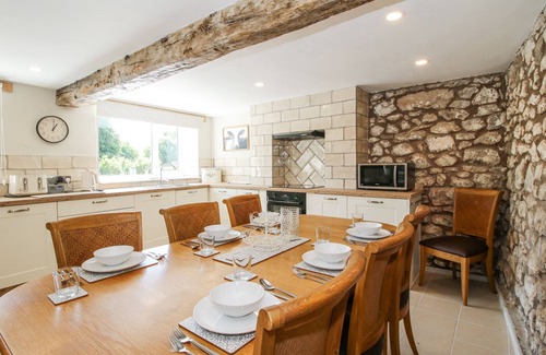 Please note: This property has a Monday or Friday check in only. Pennall Cottage consists of a kitchen and diner with an electric oven, induction hob, microwave, fridge/freezer, washing machine, a dishwasher, dining seating with seating for eight people, a sitting area with a Smart TV, DVD player and a woodburning stove. The bedrooms consist of a super-king-size (zip/link, can be twin on request), a king-size and a double, along with a bathroom with a bath, walk-in shower, basin and WC. Outside, there is an enclosed front garden with artificial lawn, hot tub, and furniture, an enclosed side garden with lawn and patio, and off-road parking for three cars. Within 2.2 miles, you will find a shop, and within 0.1 miles, a pub and a canal, and please note that this is a non-smoking property. WiFi, fuel, power, bed linen and towels are all included in the price. Two well-behaved dogs are welcome. A quaint holiday awaits at Pennall Cottage. Note: Step up to the bath area in bathroom, please take care.