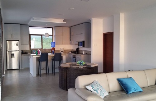 Spacious penthouse with 360 view of the ocean and rainforest in the small fishing town a few kilometers north of Montanita and Olon Ecuador. It's situated on the hill with private access from the Ruta del Spondylus. The beach is a short 5 minute walk down the hill. It is very private and secure. There is a beautiful pool in the common area with great ocean views and tropical rainforest to the east.