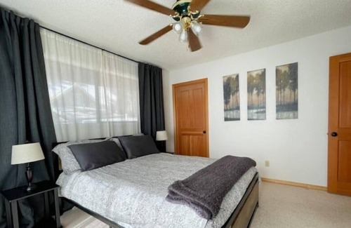 Beautiful pine cabin nestled in the trees. Bright and cozy with that mountain cabin feel and mountain views. Enjoy the tree house vibes from the family room while sitting by the fire or enjoying your morning coffee listening to the birds outside on the large front deck. Only a two minute walk to the local brewery, museum, park, and all the great restaurants and local hotspots. 10 minutes from Mt High ski resort. Enjoy hiking, biking, disc golf, and zipline tours. Or just relax in the summer time