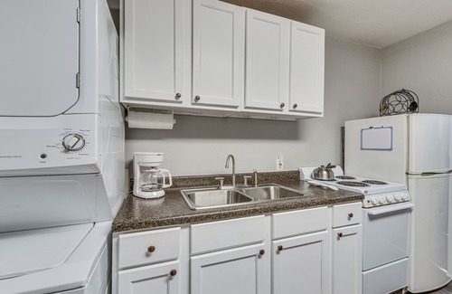KITCHEN: Drip coffee maker, blender, fridge, stove & oven, microwave, dishware/flatware, trash bags/paper towels, cooking basics, spices