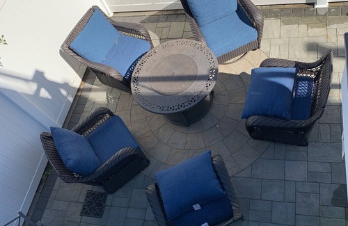 3 story house with ocean and marsh views. Natural gas fire place, heated outdoor covered deck, beautiful paver private patio. Walk out basement with living room, bathroom and Murphy bed. Top floor master.
