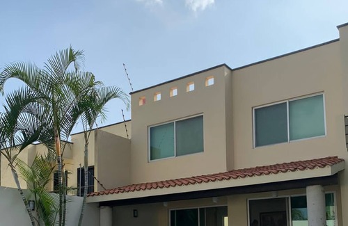 Wonderful tranquility in the eternal spring of Mexico, has a garden and pool with solar, 3 bedrooms equipped with private full bathroom, large spaces, a super equipped kitchen with a bar open to the dining room, a living room overlooking the garden and pool, terrace with barbecue. A mix of modern style with a Mexican twist. Enjoy the calm of its location, we are 1 hour from Mexico City and 5 minutes from the best shopping malls in Cuernavaca as well as the entrance to the highway.