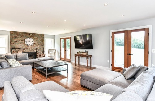 Trinity Farm Manor features an open concept living, dining and kitchen area perfect for entertaining. Modern down-to-earth luxury furniture perfect for gatherings and large screen SmartTV for your favorite movies, sports or presentation.