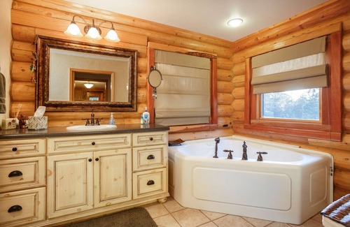 Once in a lifetime opportunity or a favorite place to return for a yearly family reunion, ladies' week, corporate retreat, men's bonding. Bring your Friends. This spectacular 5 bedroom plus loft home features unparalleled craftsmanship. Resting on Nearly 12 acres, this private 3 story hand-crafted log home features sky high ceilings, intricate woodwork, wrap around porch, walk out balconies and a bar entertainment room to bring everyone together.