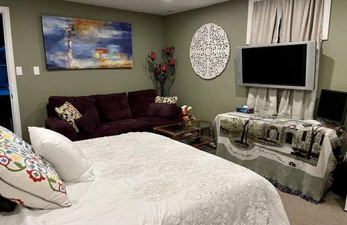 Adding to the allure of our property is our spacious and private basement, which includes a comfortable bedroom with a private bathroom. Equipped with a cozy sofa, treadmill, and pool table, our basement ensures a comfortable and enjoyable stay, whether it's for a short visit or an extended stay.
