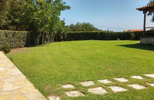 Dora property is situated in tragaki, a green area 2km from tsilivi tourist village. Fenced off and surrounded by 6500m2 large olive grove, the building is separated in 2 different apartments provide privacy for those wishing to relax in a quiet atmosphere.Big garden privacy and fenced off makes it ideal for kids. Local restaurants, supermarkets, cafes and bars are near-by and the beautiful sandy beach is only 200 meters away. The air-conditioned apartments are spacious and comfortable, fully furnished and equipped. Each apartment has two bedrooms (one with double, one with two single beds), one bathroom with shower, a living room with dining area, a kitchen and a balcony. The large garden has a fireplace for barbecue and a patio with deck chairs. Parking space and WI-fi is free of charge. Laundry services can be arranged. The property is easily accessible from zante town and airport.