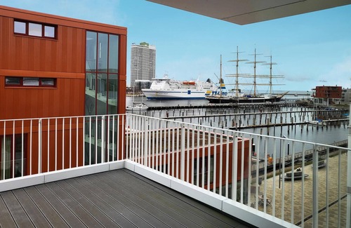 This exclusive penthouse holiday apartment in a promenade villa is located right in the heart of the new BeachBay holiday resort on the Baltic coast of Schleswig-Holstein. From the roof terrace of the holiday apartment you can enjoy a fantastic view over Travemünde harbour, the River Trave and the Baltic Sea.