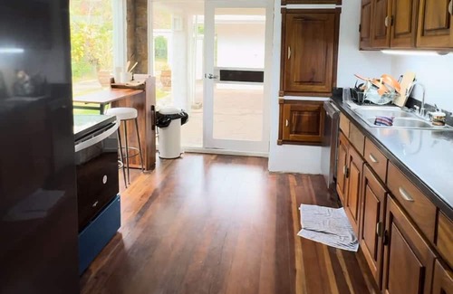 Welcome to Pure Life Sanctuary, a breathtaking mid-century modern escape on 2 acres of lush paradise. With 4 spacious bedrooms, a grand dining table for 16, a cozy indoor fireplace, and a secluded private waterfall, this home is perfect for group getaways and intimate events. Enjoy a chef’s kitchen, private garden with fresh fruit trees, and serene outdoor spaces to reconnect with nature. A true hidden gem for those seeking beauty, peace, and adventure.