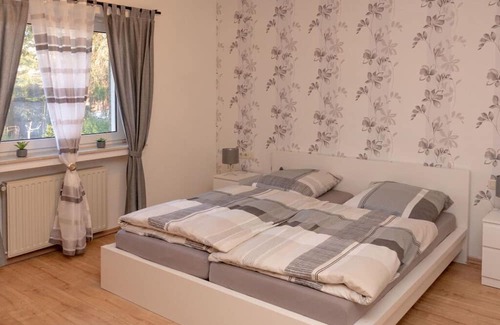 The 80 sqm non -smoking apartment was completely renovated and re -established in 2018. It is located in a single bungalow, without other tenants, in a rural environment. There are two sheep rooms (each with double bed 180x200). Living room with a cozy seating area, a flat-screen TV and a dining area. Free WiFi .. The kitchen is fully equipped (ceramic hob with oven, refrigerator, toaster, microwave, coffee machine and dishwasher). The bathroom has a bathtub, shower, toilet. Separate guests toilet. Washing machine and dryer for free use. For our little guests waiting in the basement, a lovingly furnished scope with toys, children's books, painting things and football kickers. The spacious terrace to the south is ideal for relaxing. A large car parking space right on your doorstep Wheel of wheelchair ramp is available on request.