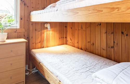 Cottage located in quiet surroundings on a large plot at the end of a closed road approx. 200 m from child-friendly bathing beach and close to Palmestranden in Frederikshavn. The house is furnished with two good bedrooms and a large annex. In the annex there is a TV and game console as well as a bedroom and extra bathroom. Open kitchen / living room and a living room with wood burning stove, where there is direct access to the terrace to the south. Here there is room for cozy barbecue evenings, where you can enjoy the silence in the area. In addition, the grounds invite for lots of play on the large lawn. The house is ideal for those who want relaxation, sun, beach and nature experiences.