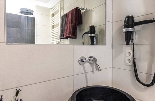 In the "throne room", the modern bathrooms, you will find a toilet with integrated ventilation, a stylish sink and a floor-level shower with rain shower and hand shower.