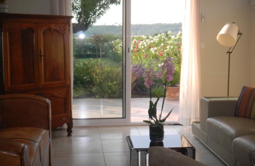 Large villa for 6-7 people, tastefully furnished, ideal for a large family or for two couples with children. Situated on the outskirts of a picturesque and tranquil village, from which many excursions are possible. Recently and completely renovated, it offers all modern comforts. The 1st floor, the fully equipped kitchen opens to a large living through sunny all day and a balcony overlooking the west; 2 bedrooms, one with en suite bathroom and a shower room for the other. On the ground floor, entrance hall, bathroom with shower, two bedrooms, one opening, as well as the TV lounge, on a large terrace and a large fenced garden with trees and large lawn, ideal place for children's games. WC on each floor. Fully air conditioned in summer and heated in winter. Closed courtyard and parking. Decreasing rates according to duration: 10% on the second week, 20% on the third.