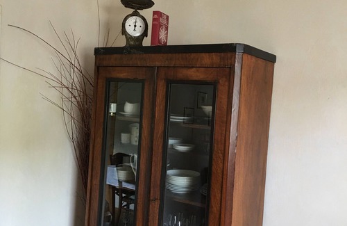 The apartment in 1. OG has a bedroom 14 sqm with double bed b = 2,00m, a living room with sofa bed, kitchen with dining table, small conservatory with beautiful views and bathroom with walk-in shower, sink and toilet. It was renewed ecologically in 2017/2018 and is to rent for from 58, - € / night for 2 people, each additional person 17, - € / night including energy costs, plus. Final cleaning 1 x 80, - €. The kitchen is fully equipped with stove, oven, fridge, pans, pots and other kitchen utensils. TV, stereo, games and books are standard. Pillows and blankets are ready for you. If you also need something, feel free to contact us. Shops are located in Emmelshausen in a variety of choices (5 km away). On request bed linen / towel package can be provided for 9, - € / package.
