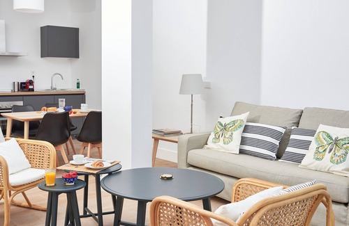 The open plan kitchen is well equipped with all the appliances and utensils expected of a quality rental property (stove, fridge/freezer, oven, washing machine, coffee machine, etc), perfect for those guests that enjoy cooking and entertaining. The living room is furnished with 1 sofa and several armchairs facing a Smart TV. A dining area with seating for 4 is also provided. The property's private terrace offers an alfresco dining area.