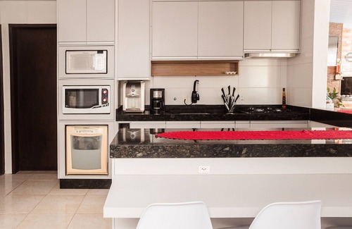 Unit amenities: Swimming pool and private barbecue, pool table, 500 mega Wi-Fi internet, 55'' TV, bed linen, pillows and blankets, bath towels, iron and washing machine;
