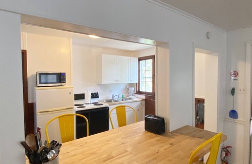 The kitchenette has all the necessities for preparing meals and includes a large bar area with dining seats for 4 guests.