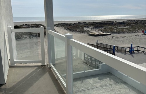 This retro-themed unit is DIRECTLY ON THE BEACH WITH AN UNOBSTRUCTED, PANORAMIC VIEW of the ocean and beach. Family owned and operated, this condo includes a private deck, heated pool and kiddie pool, retro-theme decor, and so much more!