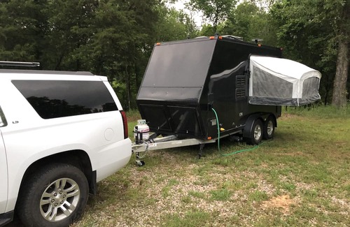 Parked on Blackfork Cabins Property and it is super close to the Blackfork River and this spot is amazing!