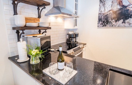 Welcome to luxury in the Aspens! This recently remodeled mountain modern two bedroom condo, Spruces 13, affectionately referred to as The Elks, makes this an amazing getaway for a small family or group of friends who want to explore Jackson Hole. Boasting almost 800 square feet, this condo is located on the upper level of the condominium building accessed by a staircase. This unit features two bedrooms; one with a Four Seasons California king bed, generous closets and generous space. The second bedroom, which includes a Four Seasons Queen bed, though smaller than the primary bedroom, provides an excellent retreat for a great night's rest.. The kitchen is fully equipped with everything the chef in your group needs to prepare a gourmet meal after a long adventure. Enjoy the electric fireplace while relaxing in the cozy entertaining area with a cup of coffee or a glass of wine. In the summer months, both bedrooms are equipped with window A/C units.