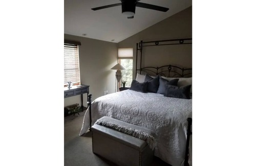 Master bedroom found on the third floor has a California king with a memory foam topper. The best view of the lake is from the master private balcony. Master has a private remodeled bathroom with a jacuzzi jetted tub. White linens and towels are provided along with COCO Magic Shampoo, Conditioner Body Wash and lotion.