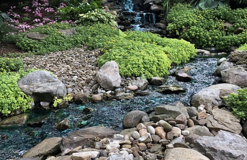 During warmer weather enjoy deck area overlooking the waterfall gazebo area