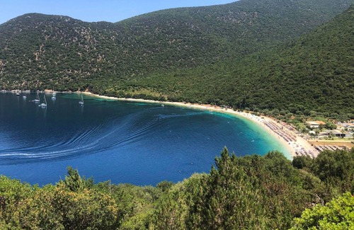 Considered to be one of the best on the island, Skala Beach (1.8km), is fringed by towering pine trees and offers a good choice of watersports and plenty of beachside bars while the town itself hosts an ample selection of restaurants, cafes and all amenities. Kefalonia is a wonderful combination of history and natural beauty with the Aenos Mountain range covered in quaint hamlets and settlements to explore. Equally tempting is is the nearbyfishing village of Katelios (7km), a gorgeous spot for an intimate fish supper in one of the waterside tavernas.