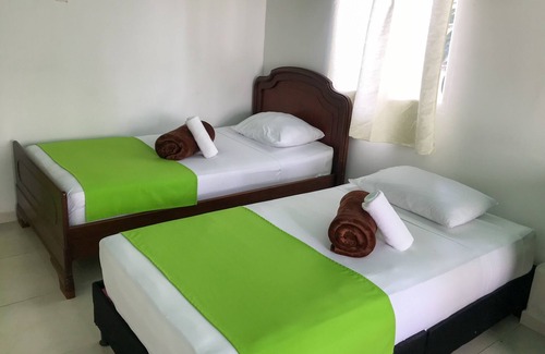 Room with 1 double bed and 2 single beds | House in Risaralda