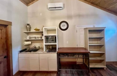 As you settle in, you'll find a cozy living area perfect for unwinding after a day of exploration with a Smart TV, desk and workspace that doubles as a dining table. The fully remodeled kitchen boasts man ample counter space and is equipped kitchenette--dishes, glasses/mugs, silverware, pans, cooking utensils, mini fridge/freezer, convection oven/air fryer (not a full-sized oven/cooktop), microwave inviting you to channel your inner chef and prepare delightful meals during your stay.