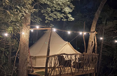 This primitive campsite offers a peaceful stay tucked just off the beaten path—reachable by a short hike from the parking area. Nestled beside the Pisgah National Forest, our 16’ yurt sits on a private deck and features a king-sized bed, cozy furnishings, basic cookware, and all the fresh mountain air your soul could ask for.
