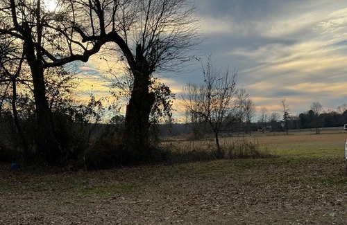 RV Site #4. Flat RV spot with electric and water hook ups. Large open area to view the 2024Total Eclipse at the base of beautiful Petit Jean Mountain in Perry County Arkansas. 60 quiet and remote acres. Bring your pets but keep them on a leash. These spots are only available April 5-8, 2024 and a 3 night stay is required.
